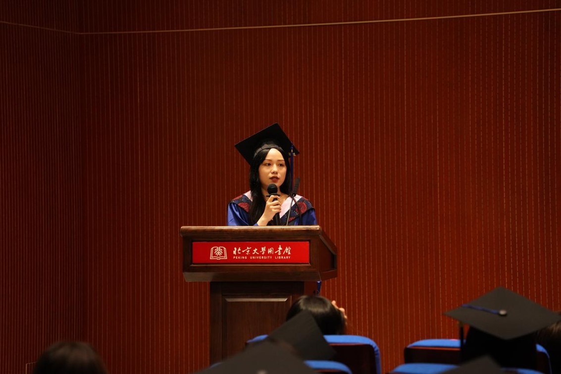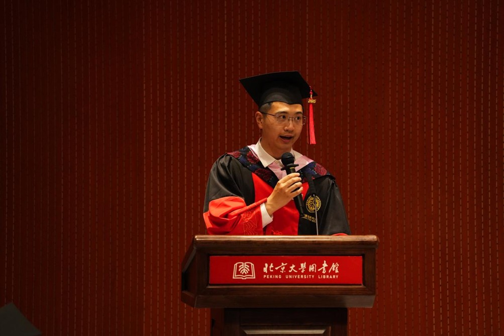 博士毕业生代表、2020级直博生巩固分享了自己的毕业感言。他从“学习本领”、“联系社会”、“身心健康”三个方面总结了自己的收获与成长,并表示未来自己会将已铸就的坚实本领,化作“绕指之柔”,怀抱北大人、新媒体人的自觉,在时代洪流与智能浪潮中回报祖国、回馈社会,创造更大的价值,实现更圆满的自我。