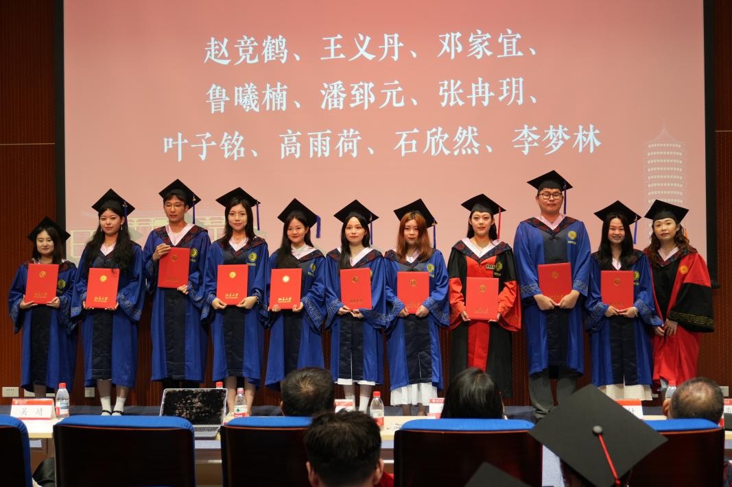 田丽为获评北京大学2025年优秀毕业生的同学颁发证书。